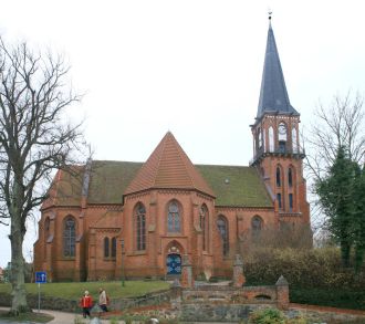 Die Kirche Wustrow wurde auf einem künstlichen Hügel errichtet.