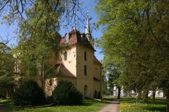 Die neugotische Kirche wurde von 1875-77 errichtet. Der rechteckige Backsteinsaal auf Feldsteinsockel ist mit einem Westturm und einer eingezogenen Chornische ausgestattet.