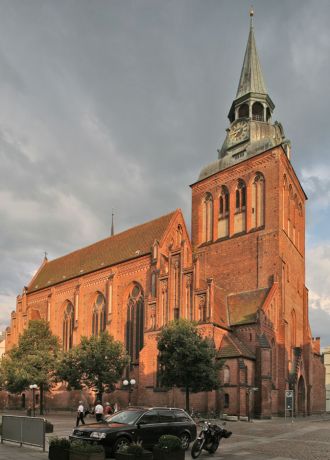 Der Dom St. Nikolai, dessen Turm 100m in die Höhe schießt, ist die größte der drei gotischen Backsteinkirchen im historischen Zentrum.