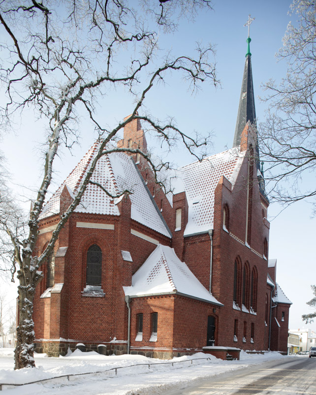 Die Kirche wurde aus Backstein im Stil des Historismus mit Elementen der Neugotik errichtet und 1895 vollendet.