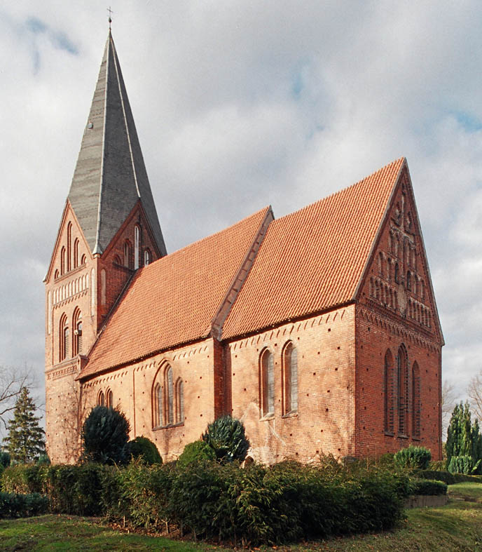 Die Tochterkirche Dreveskirchen wurde 1229 vom Kirchspiel Neuburg abgetrennt, Bischof Brunward erlaubte den Bau einer Kirche. Der damalige Name lautete wegen der abseitigen Lage des Ortes Oedeskerken (Kirche in der Einöde). Das Gotteshaus ist ein stattlicher Backsteinbau, dessen ältester Teil der in der zweiten Hälfte des 13. Jh. errichtete Chor ist. Es ist ein Beispiel für den Übergang von der Romanik zur Gotik. Das zweijochige Schiff um 1260/1270 schließt mit einem leicht eingezogenen quadratischen Chor. Die Sakristei an der Nordseite von 1245/1255 ist der älteste Gebäudeteil. Der Ostgiebel ist besonders reich verziert, die Basis des Giebeldreiecks bildet ein doppeltes Deutsches Band. Die Mandoria darüber deutet den erhöhten Sitz Christi an. Sie ist von Arkardenbögen flankiert, die die die zwölf Apostel symbolisieren. Zwischen den Arkadenbögen ist ein großes Blendenkreuz sichtbar. Die Sakristeigiebel wurden von 1980 bis 1990 erneuert. Am Außenbau sind deutlich unterschiedliche Detailformen von Chor und Schiff erkennbar. Das Schiff ist hoch in Feldstein ausgeführt und schließt mit einem Wulst. Die Wände sind durch Lisenen sowie Spitzbogen- und Treppenfriese gegliedert. Der Chor zeigt Reste reicher, schwarzer Glasuren, sein Mauersockel ist mit einem Wulst und einer Kehle profiliert. Das nördliche der beiden Rücksprungportale ist mit Viertelstäben profiliert, das südliche mit Kleeblattstäben mit Dreieckkapitellen. Die spitzbogigen Fenster sind zumeist paarweise zusammengestellt. Die Chorwand ist durch eine Dreifenstergruppe mit teilweise glasierten Ziegeln versehenen Gewändern gegliedert.