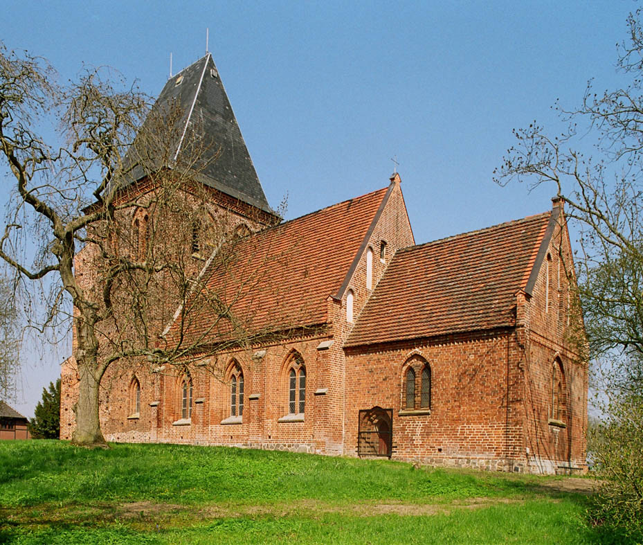 Die Kirche, ein einschiffiger Ziegelbau, besteht aus dem glatt abschließenden gewölbten älteren Chor, an dem sich noch das romanische Lisenensystem bemerkbar macht, und aus dem vor ca. 150 Jahren neu gebauten, mit einer Holzdecke überspannten Schiff.