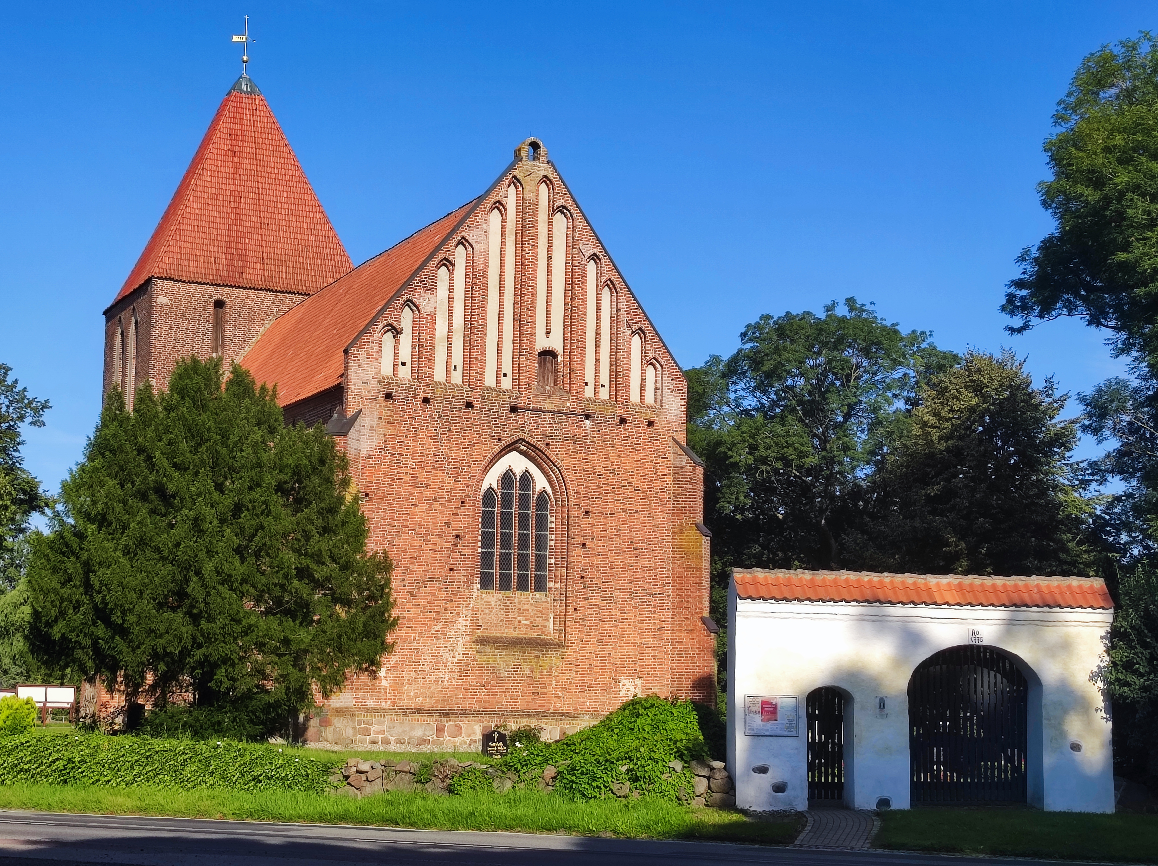 Gotische Backsteinhallenkirche, Ersterwähnung 1283; Im Schatten des Klosters Neuenkamp (Franzburg) gegründet