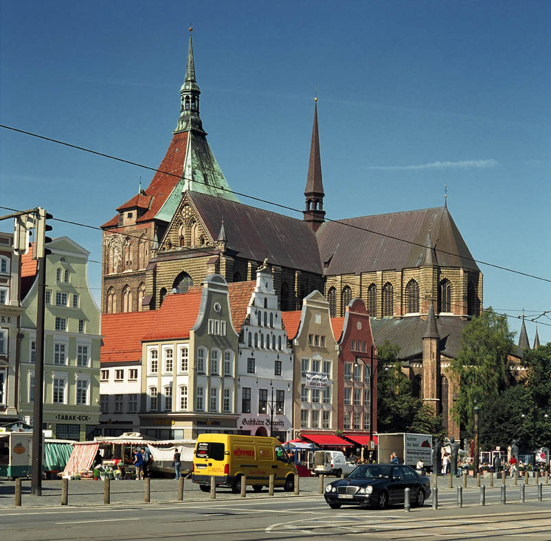 Die norddeutschen Hansestädte waren im 13. und 14. Jahrhundert äußerst wohlhabend, und das demonstrierten sie – nicht zuletzt gegenüber den finanziell oft klammen Landesherren – auch mit der Zahl ihrer Kirchen und deren Größe und Ausstattung. Vorbild war die Lübecker Marienkirche mit ihren beiden schlanken Türmen und dem welthöchsten Backsteingewölbe von 38 m. St. Marien in Rostock reiht sich ein in die Liste der damals entstandenen ganz Großen, sowohl mit Blick auf den umbauten Raum als auch mit seinen 31,5 m hohen Backsteingewölben im Mittelschiff und im Chor.